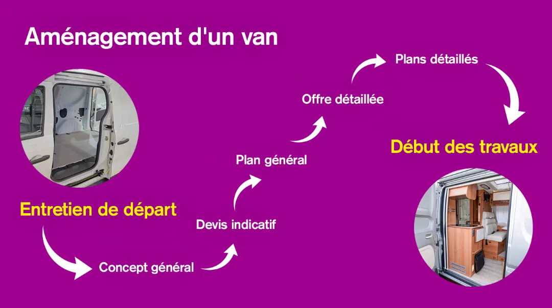 En principe, nous faisons de tout : micro-camping-cars, mini-camping-cars et grands camping-cars. La plupart des clients souhaitent aménager des fourgons de taille moyenne. Ils sont pratiques, faciles à manœuvrer et conviennent parfaitement pour deux personnes. Les familles optent généralement pour des camping-cars plus spacieux.